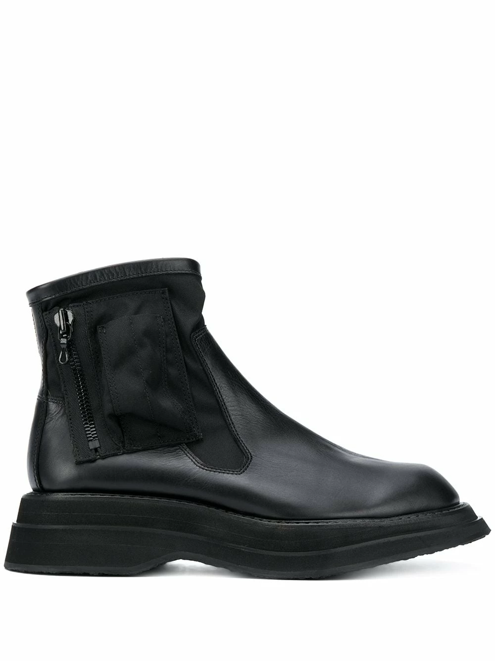 Bout rond, fermeture zippée sur le cÎté, semelle en caoutchouc. Couleur : Noir. MatiÚre : cuir.