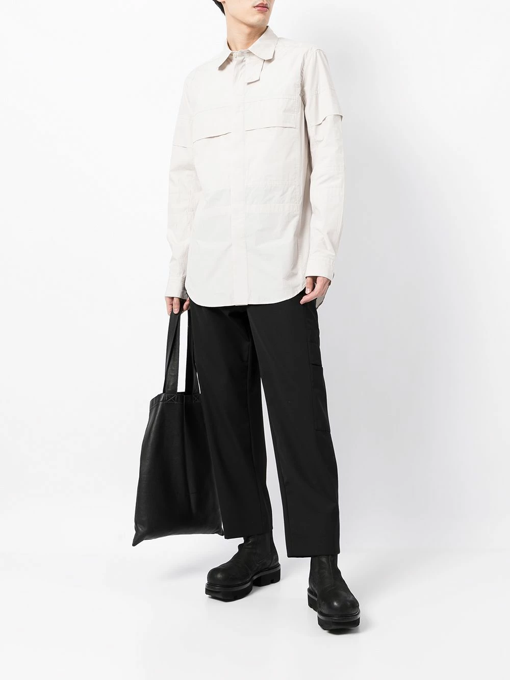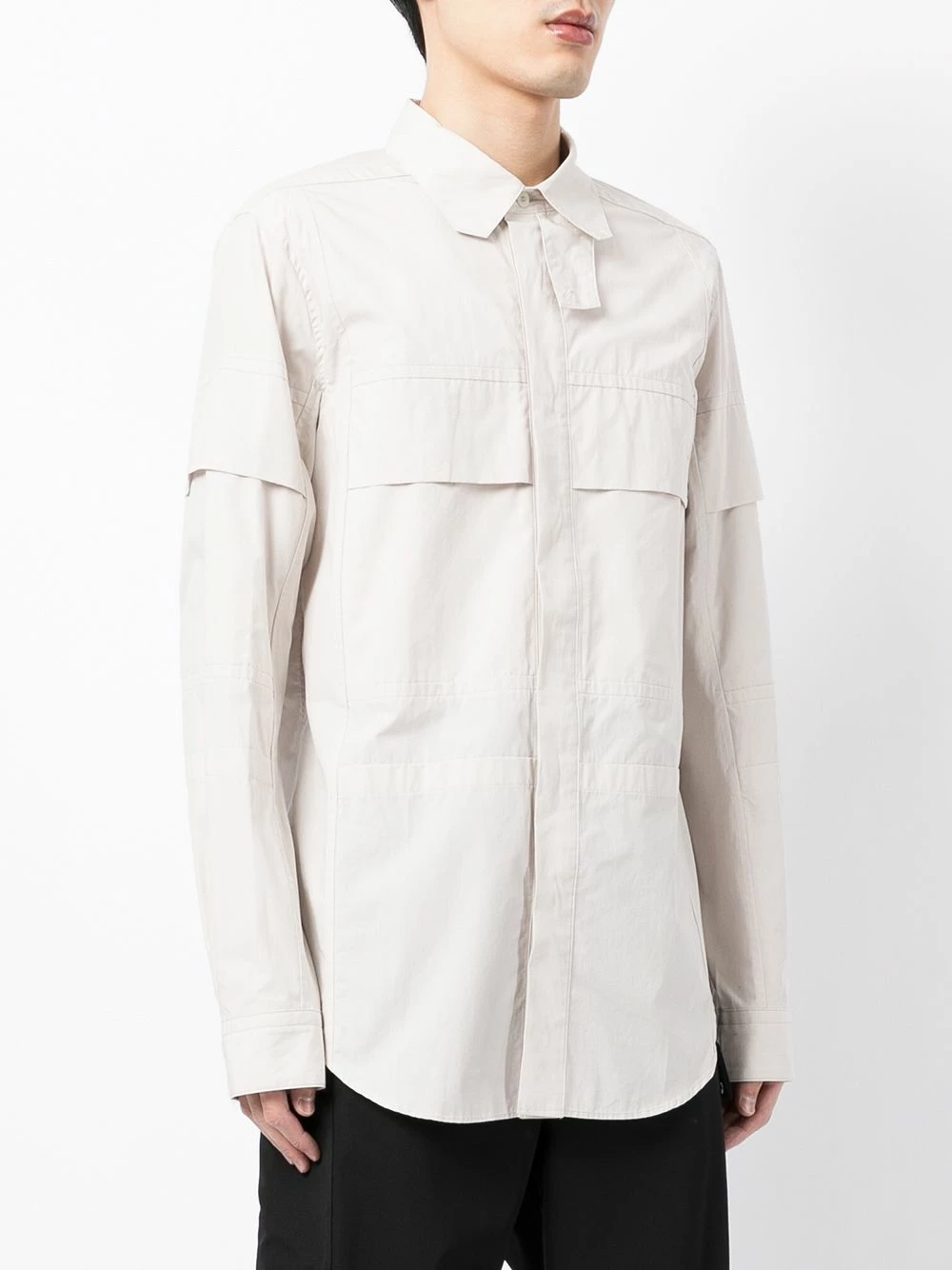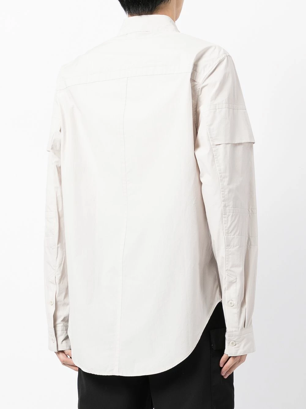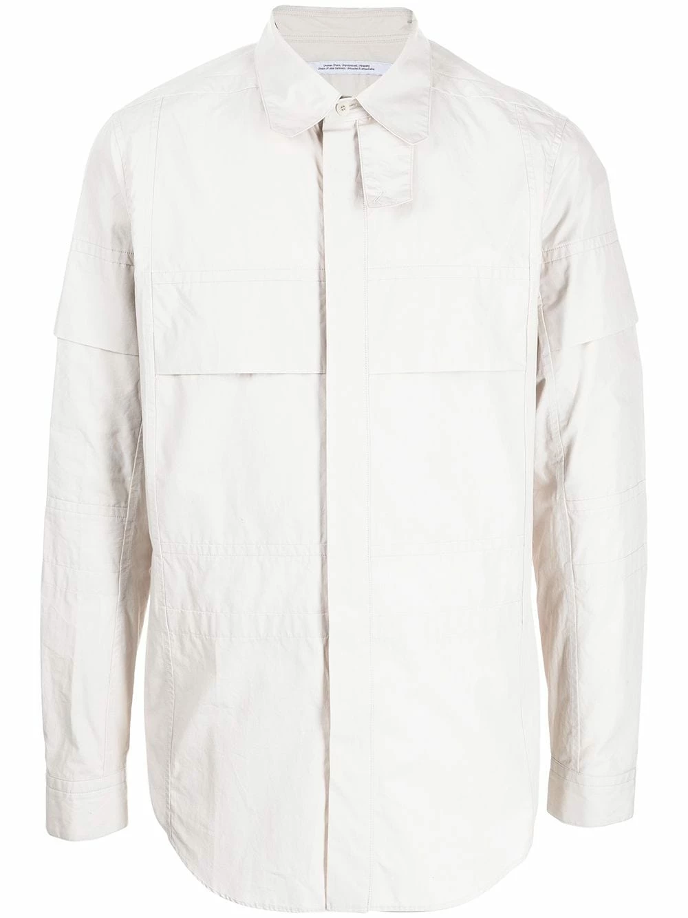 Col classique, fermeture dissimulée sur le devant, manches longues, ourlet incurvé. Couleur : blanc. Matière : coton.