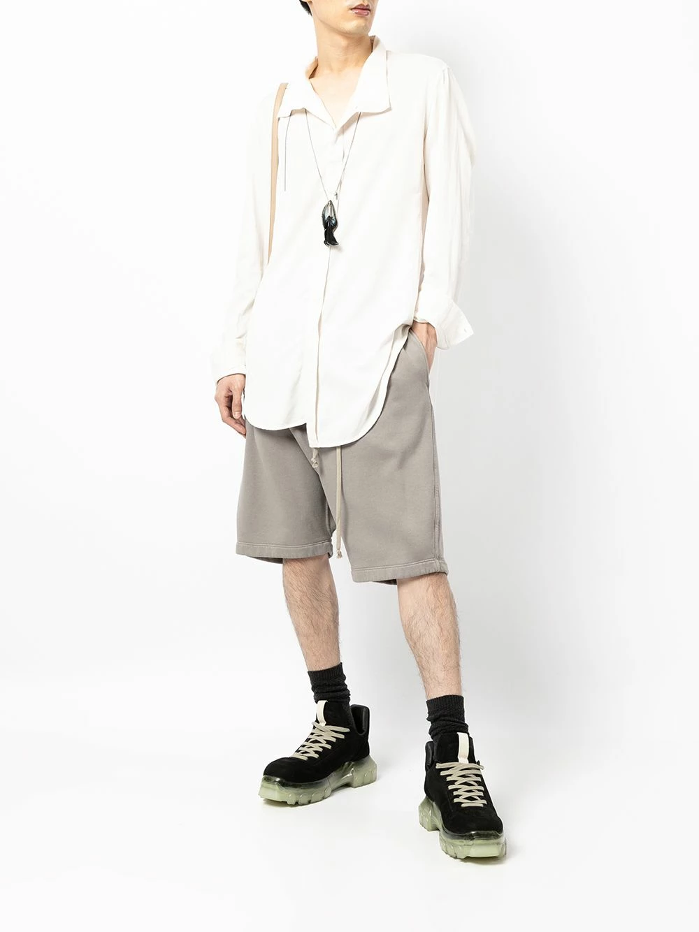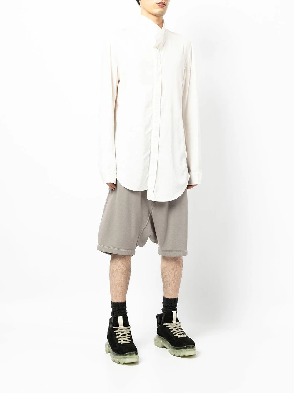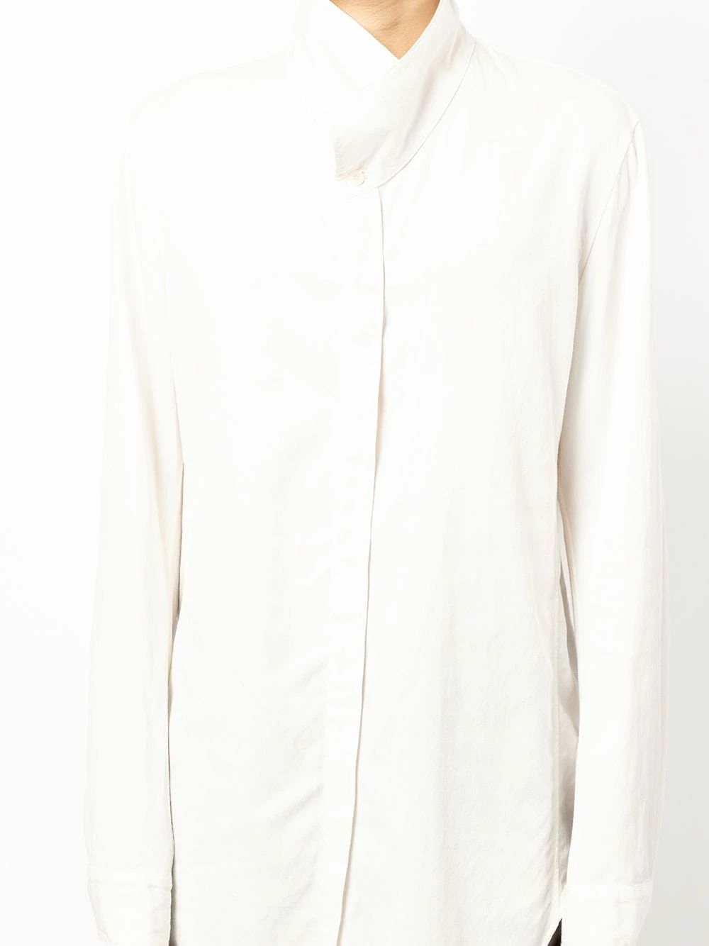 Ourlet asymétrique, ourlet incurvé, manches longues, boutonnière dissimulée sur le devant, poignets boutonnés.