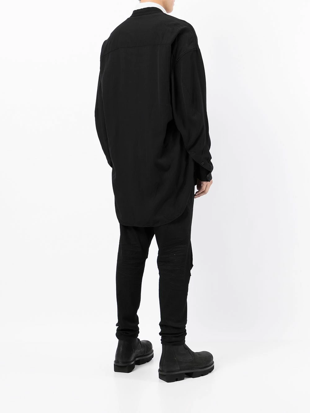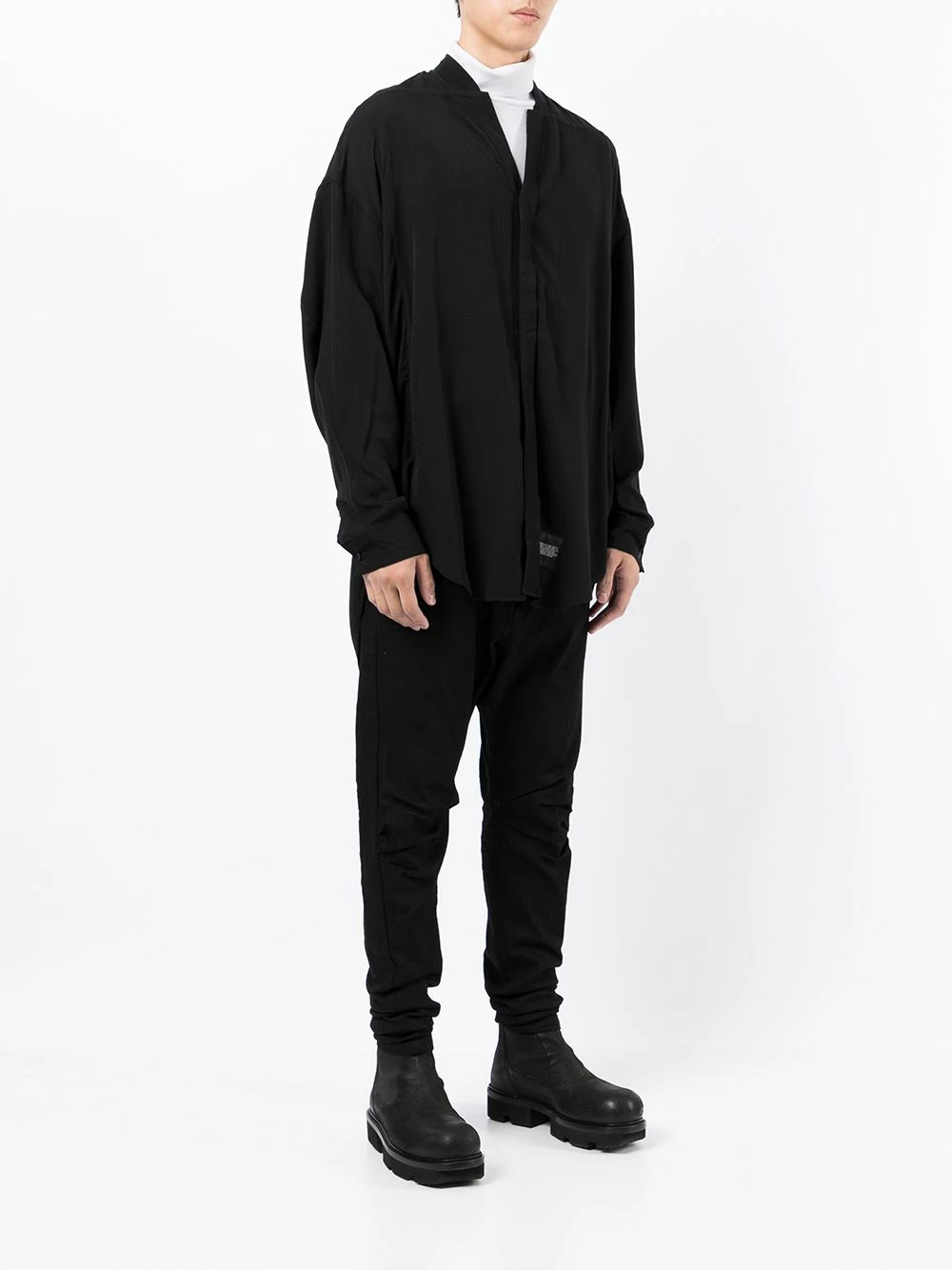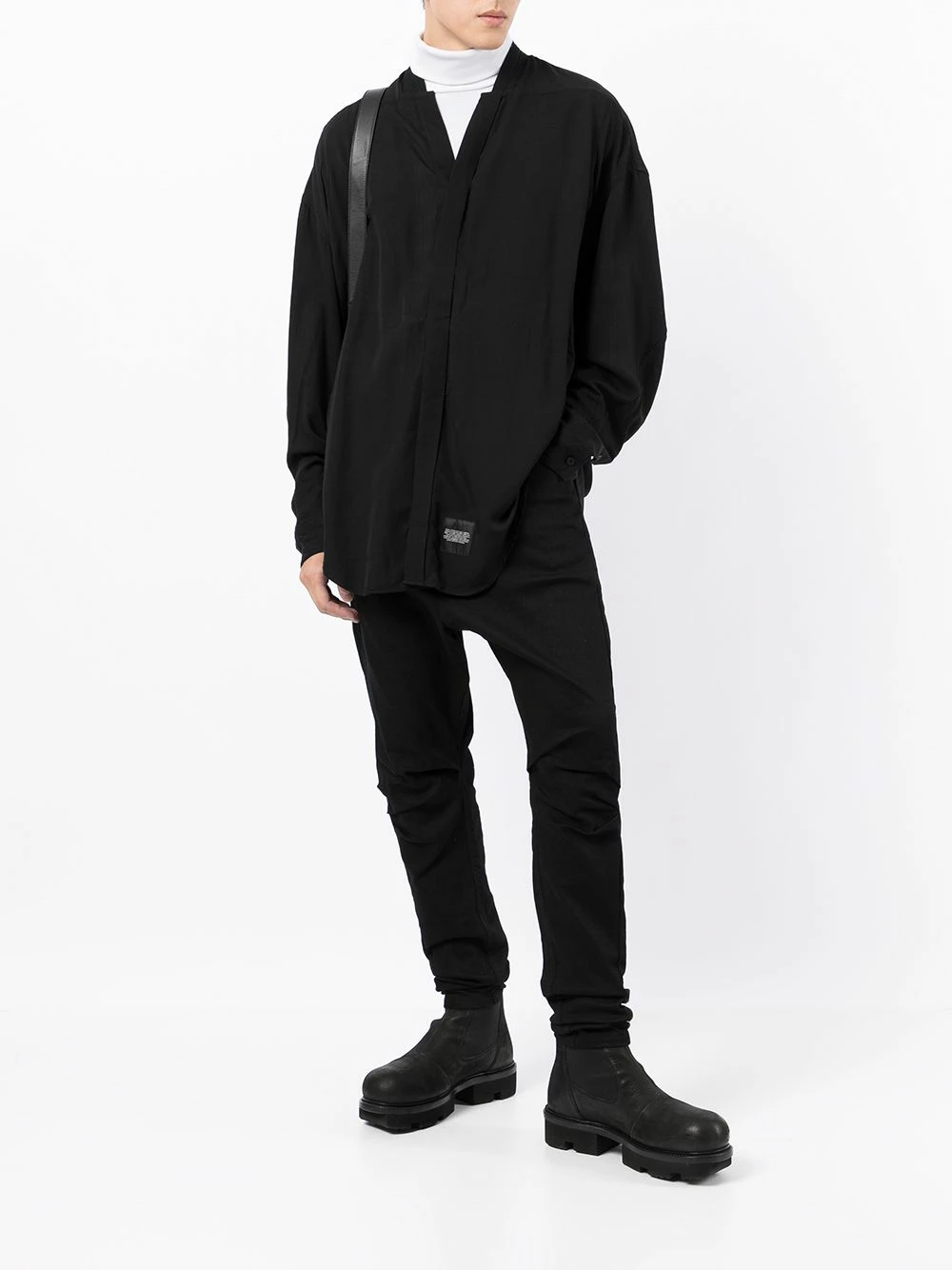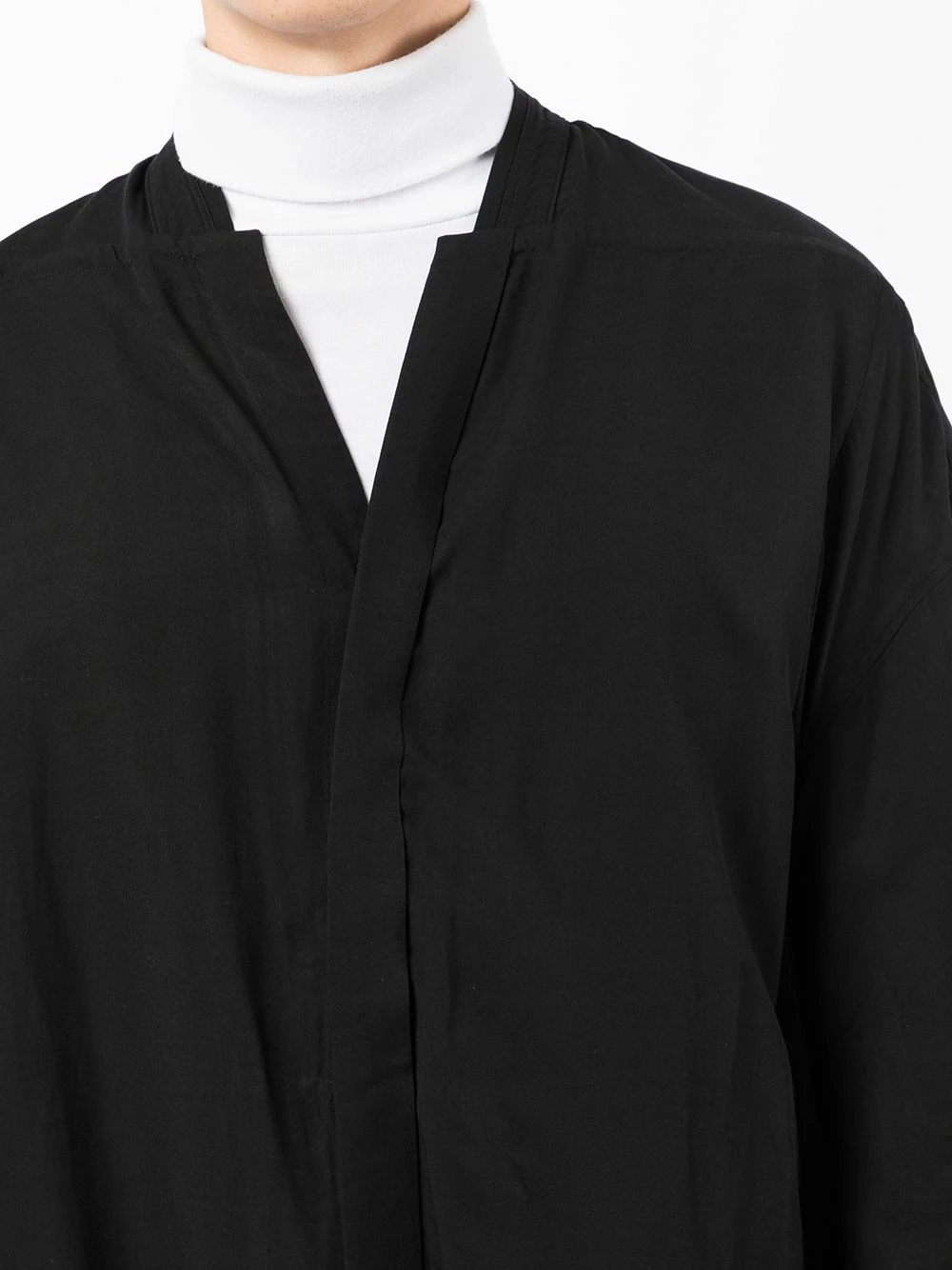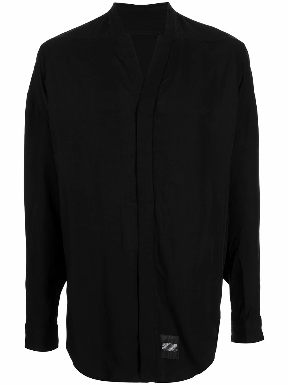 Patch logo sur le devant, col v, manches longues, boutonnière dissimulée sur le devant. Couleur : noir.