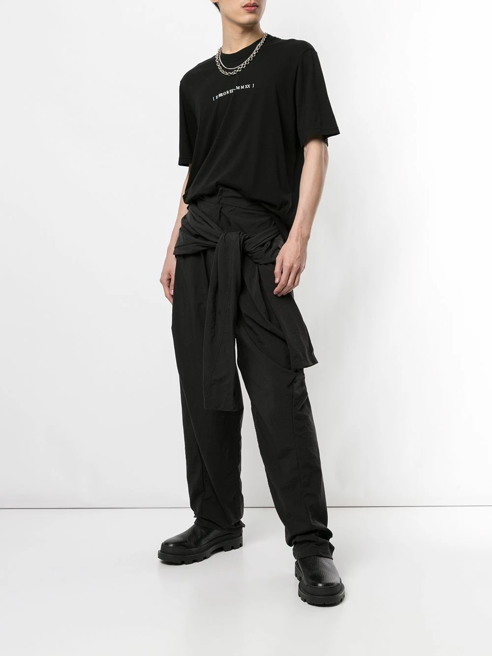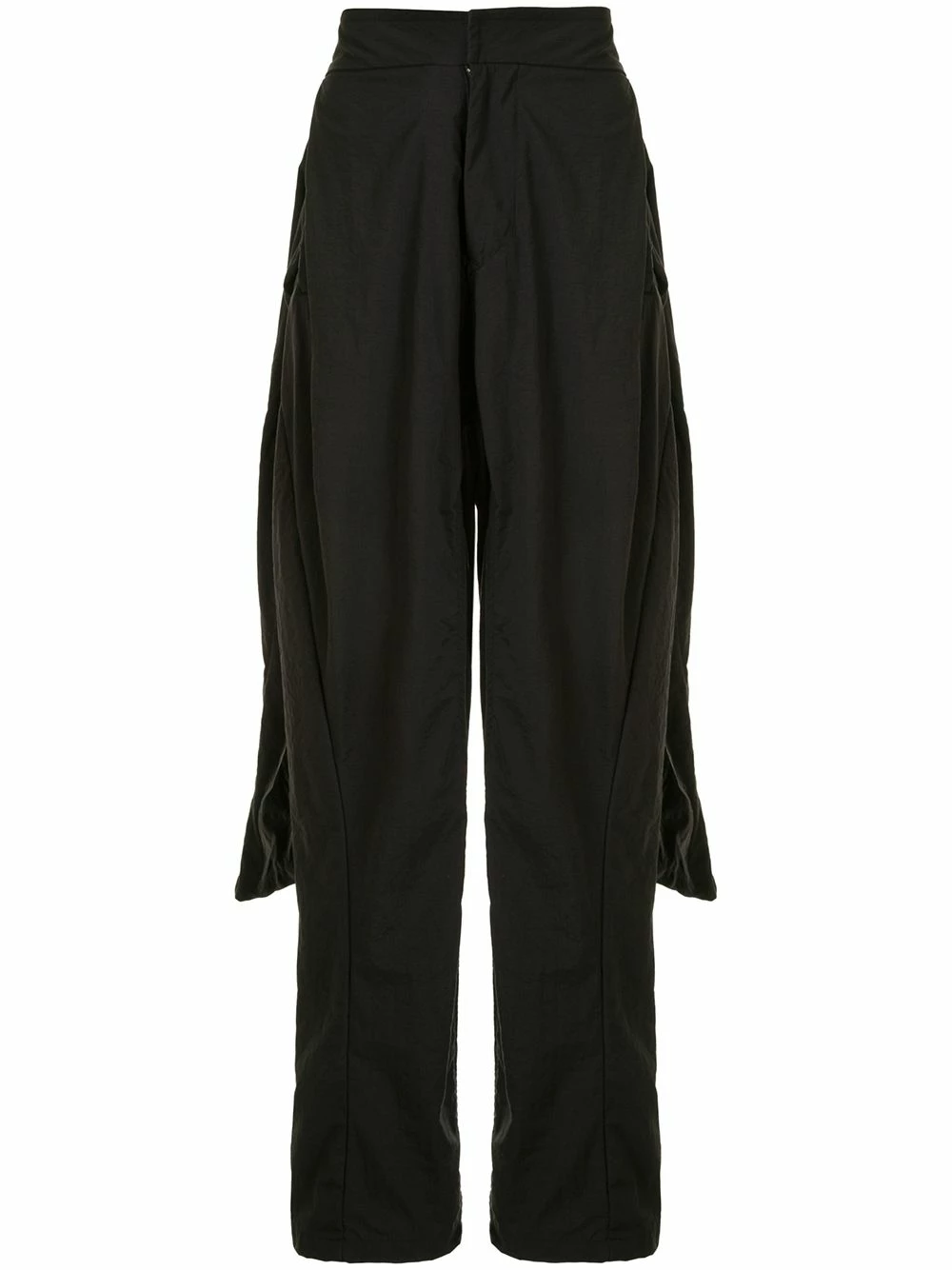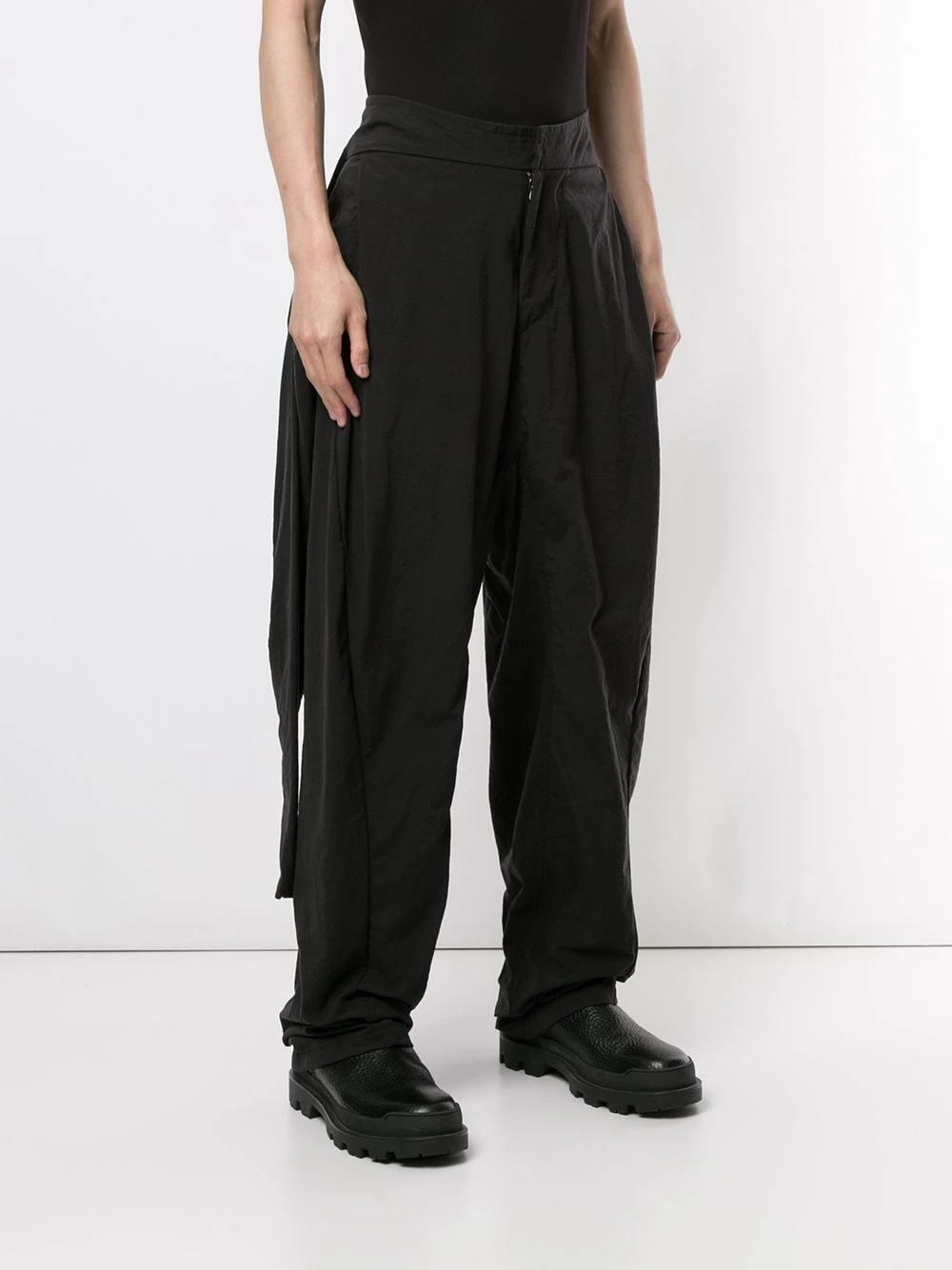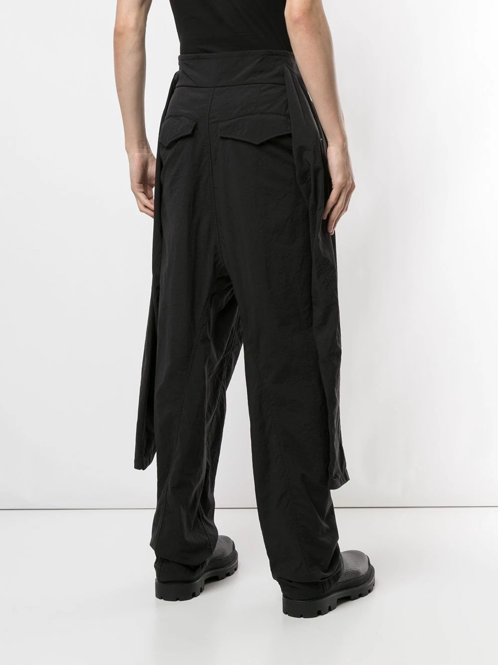 Taille haute, fermeture à zip et boutons sur le devant, passants de ceinture, taille nouée, poches arriÚre à rabat, coupe ample. Couleur : noir.