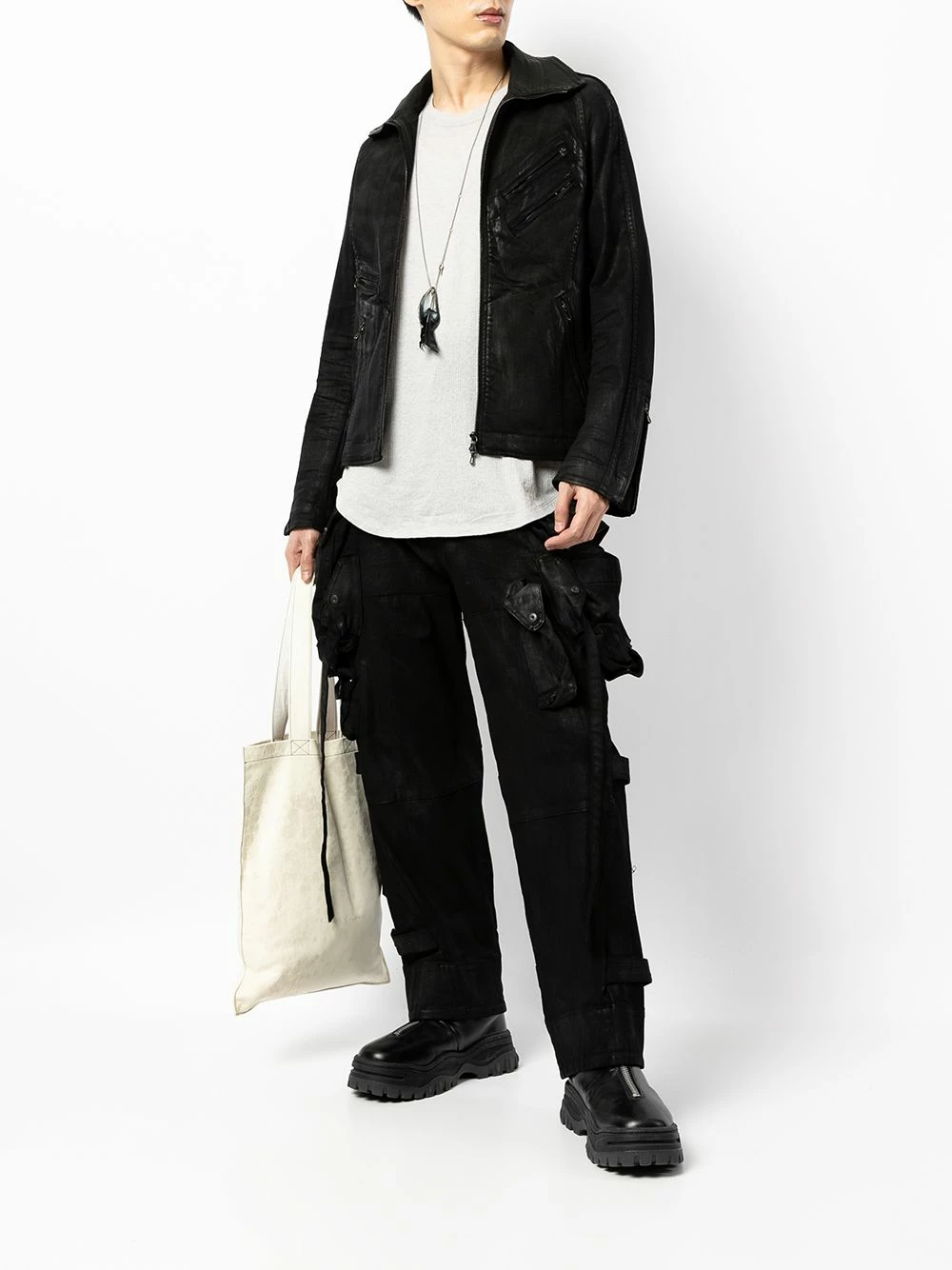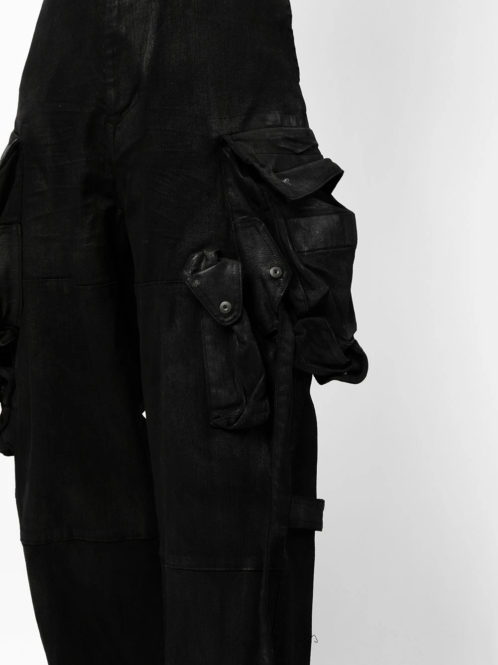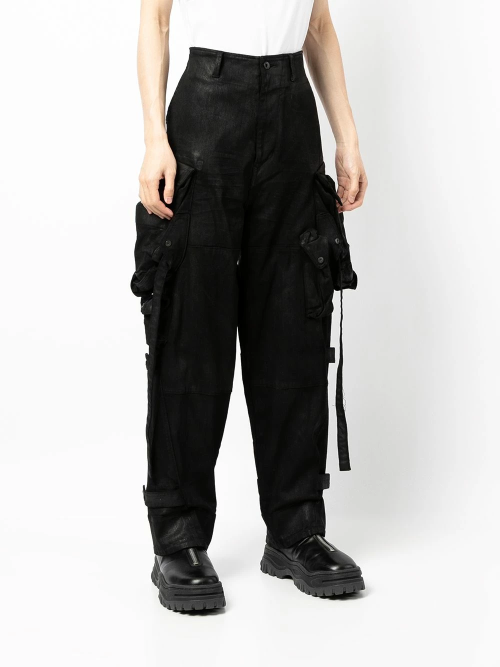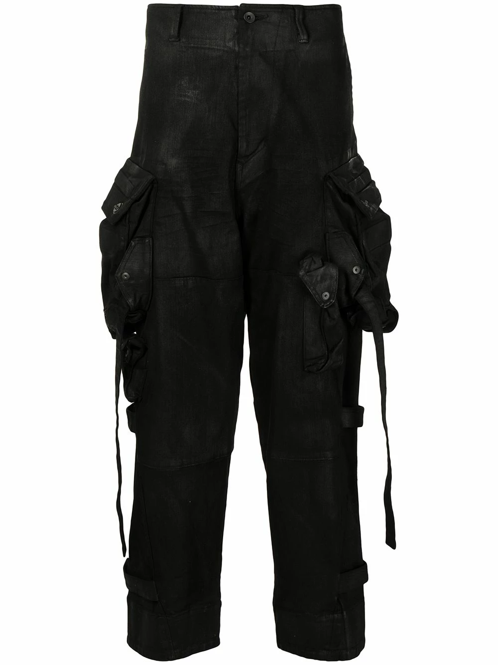 Passants de ceinture, fermeture boutonnée, poches cargo multiples, deux poches latérales fendues, poches arriÚre à rabat, détails de brides. Couleur : noir. MatiÚre : coton mélangé.