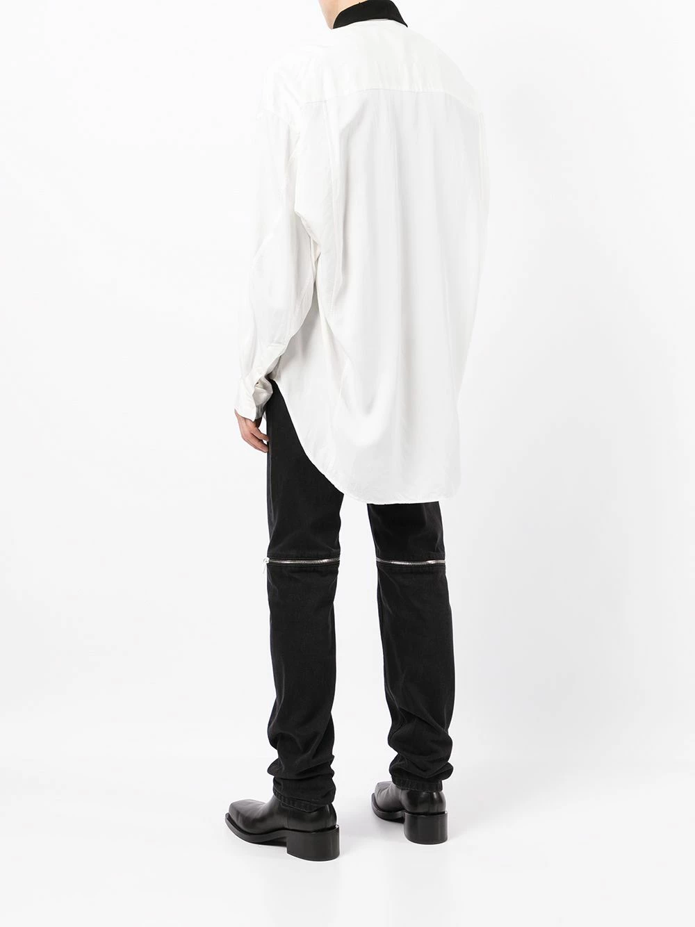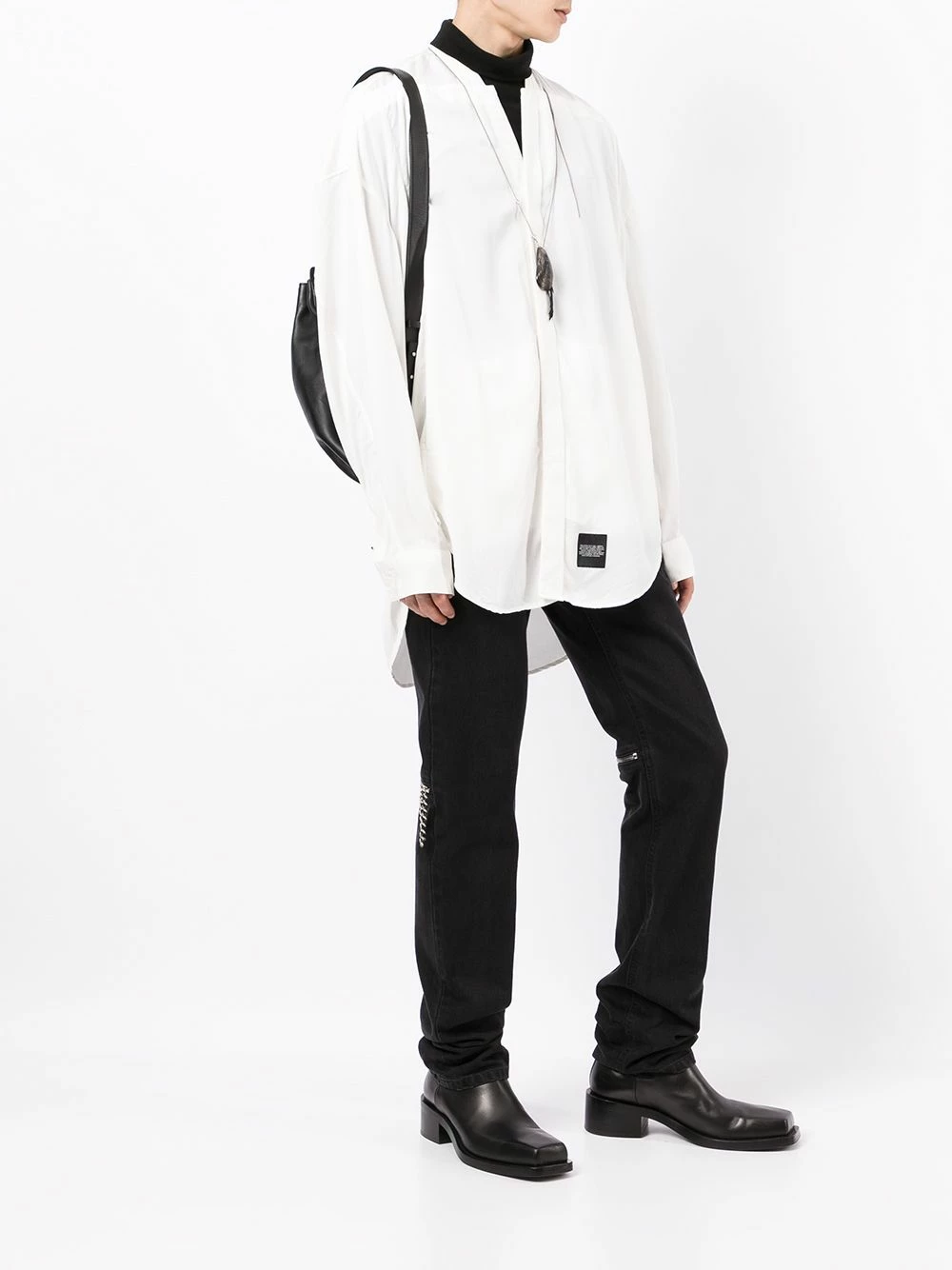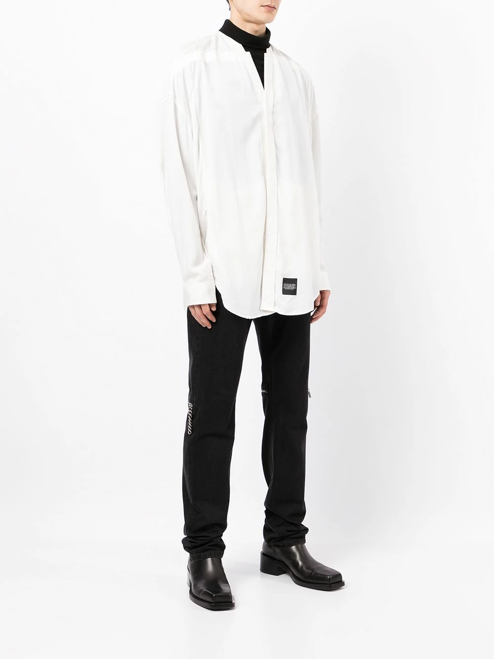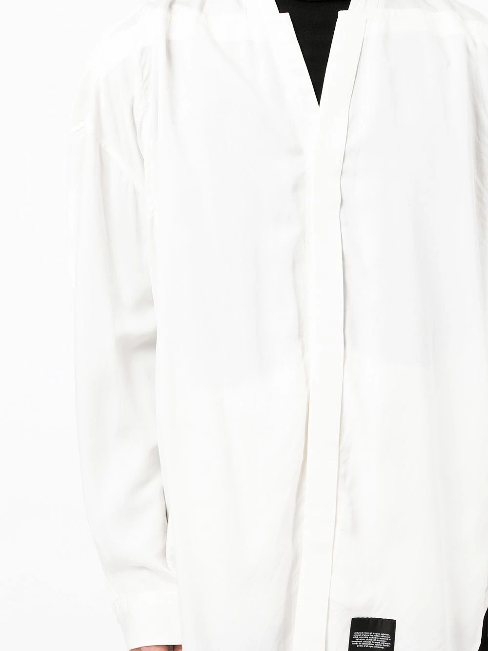 Détail de patch, design sans col, manches longues, ourlet incurvé. Matière : rayonne.