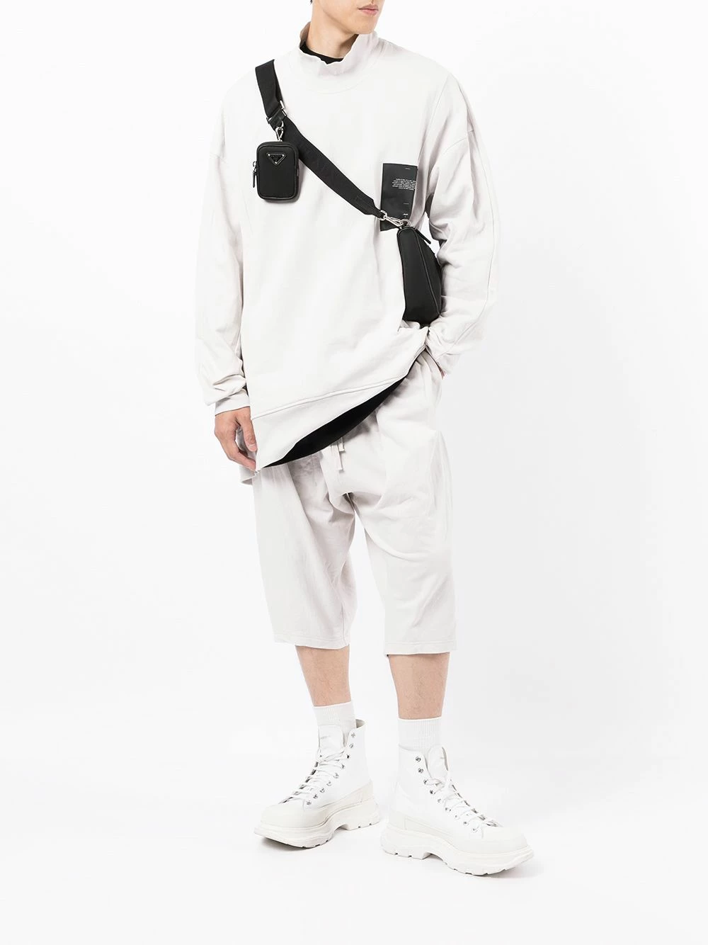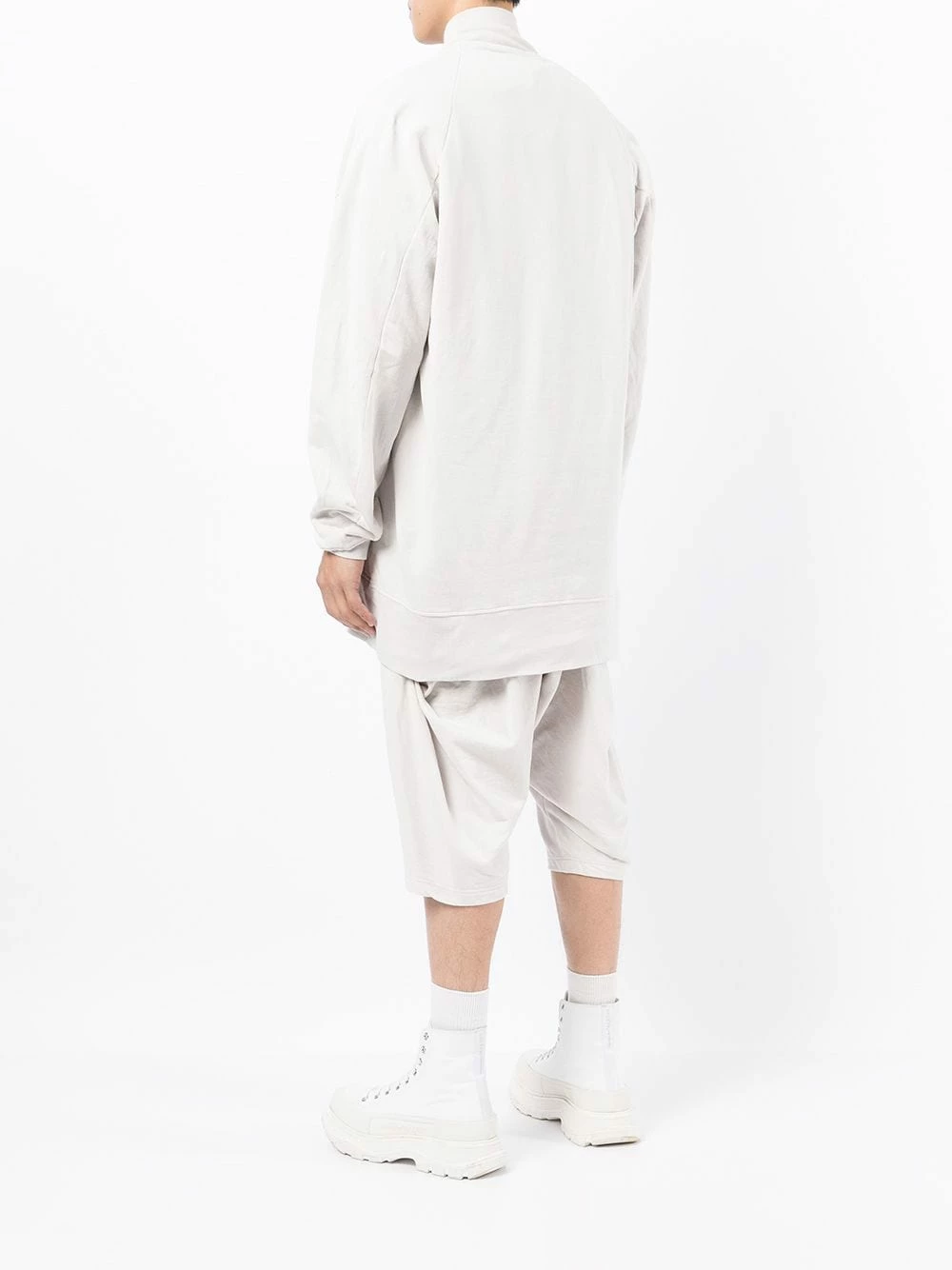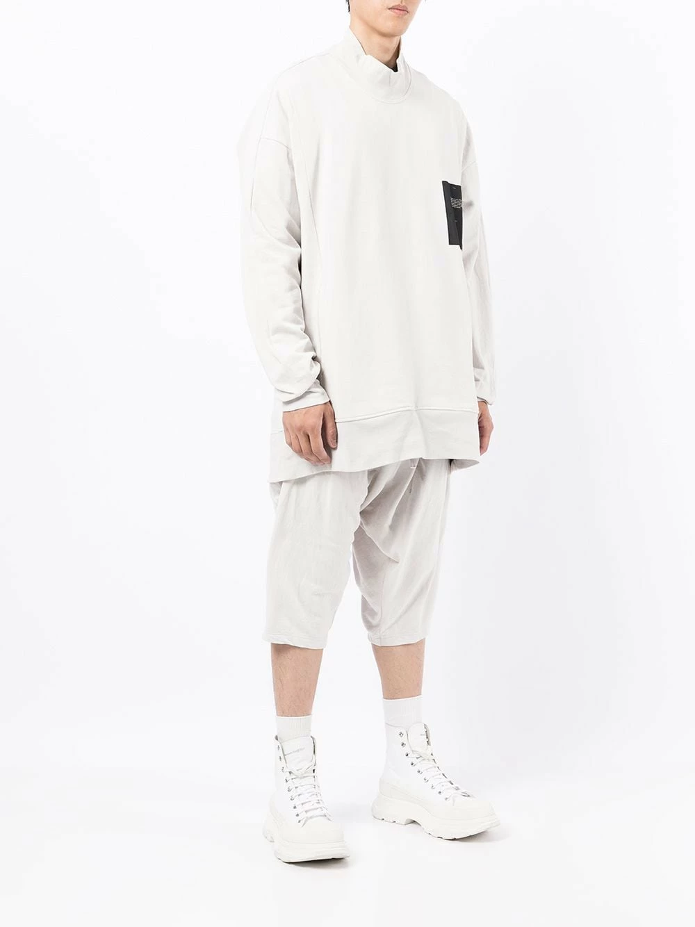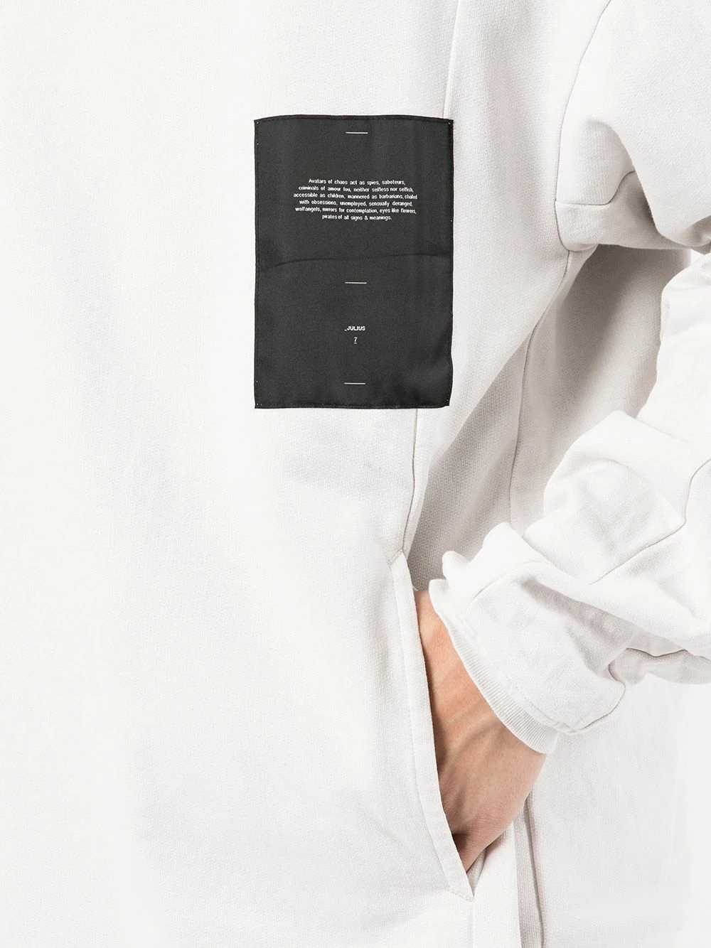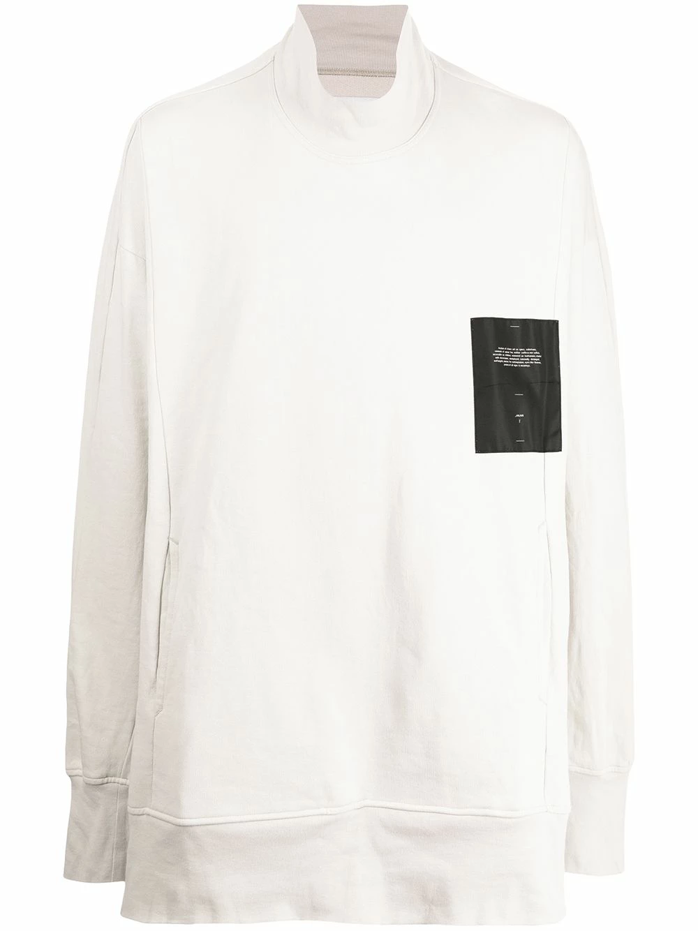 Patch logo sur le devant, col montant, effet d’épaules descendues, manches longues, deux poches passepoilées latérales, design à enfiler. Matière : coton.