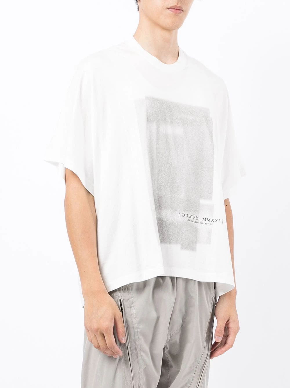 Imprimé graphique, encolure ras du cou, manches courtes. Couleur : blanc. Matière : coton mélangé.
