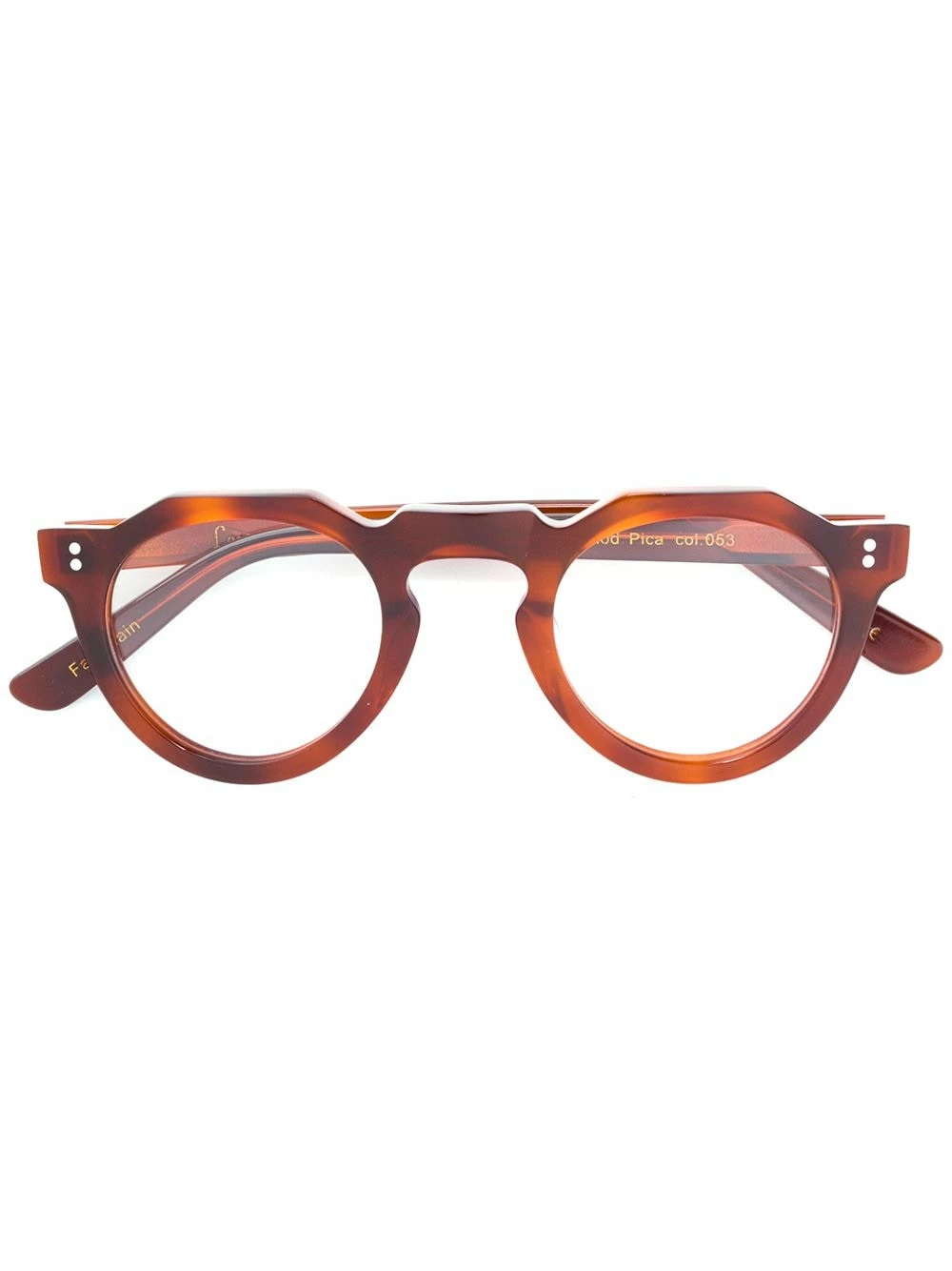 Lunettes à monture ronde en acétate marron clair Lesca. Cet article est unisexe.