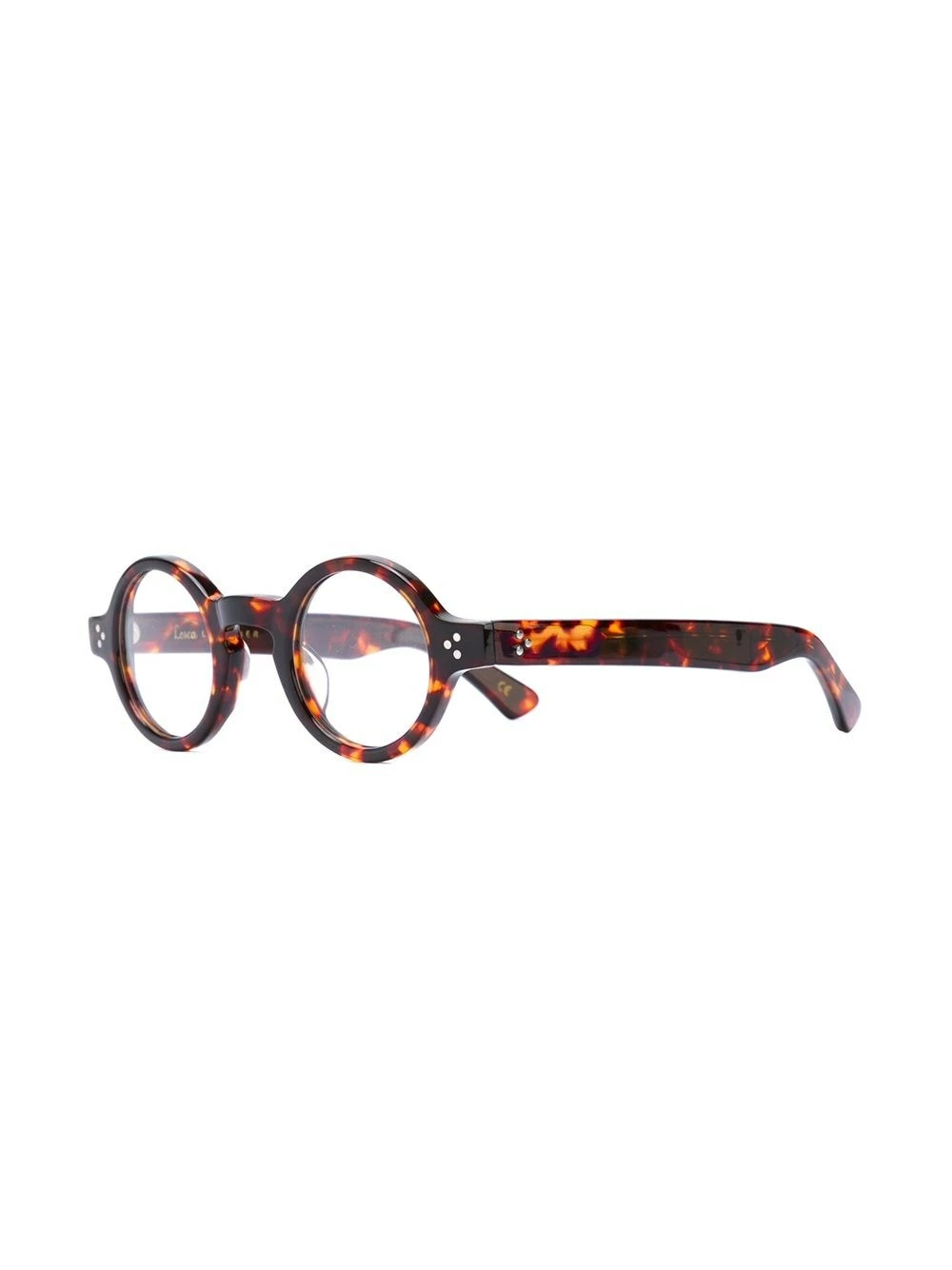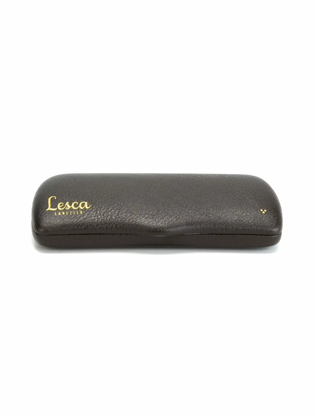 Lunettes de vue « Burt 424 » en acétate marron Lesca avec monture ronde et logo intérieur. Ces lunettes peuvent être adaptées à tous types de verres de prescription. Cet article est unisexe. Ce produit est vendu dans une boîte de protection.