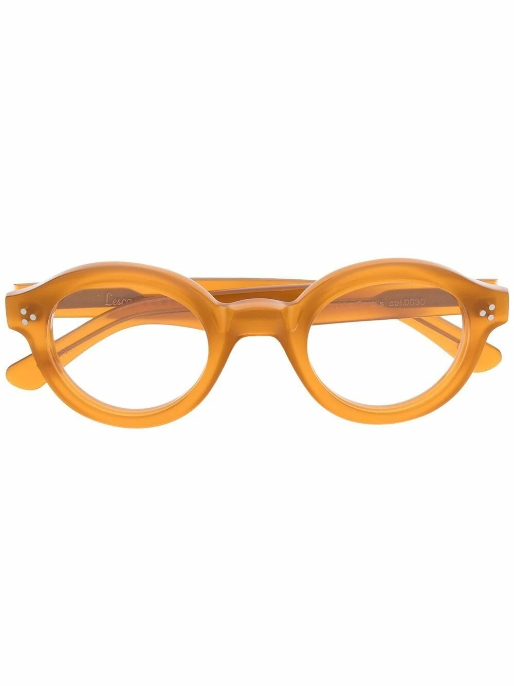 Effet de transparence, monture ronde, branches droites. MĂȘme s’il est Ă©vident que vous en prendrez bien soin, cet article vous parviendra dans une boĂźte de protection. Ouvrez lâĆil et le bon : toutes les lunettes achetĂ©es sur FARFETCH sont fournies avec des verres sans prescription.