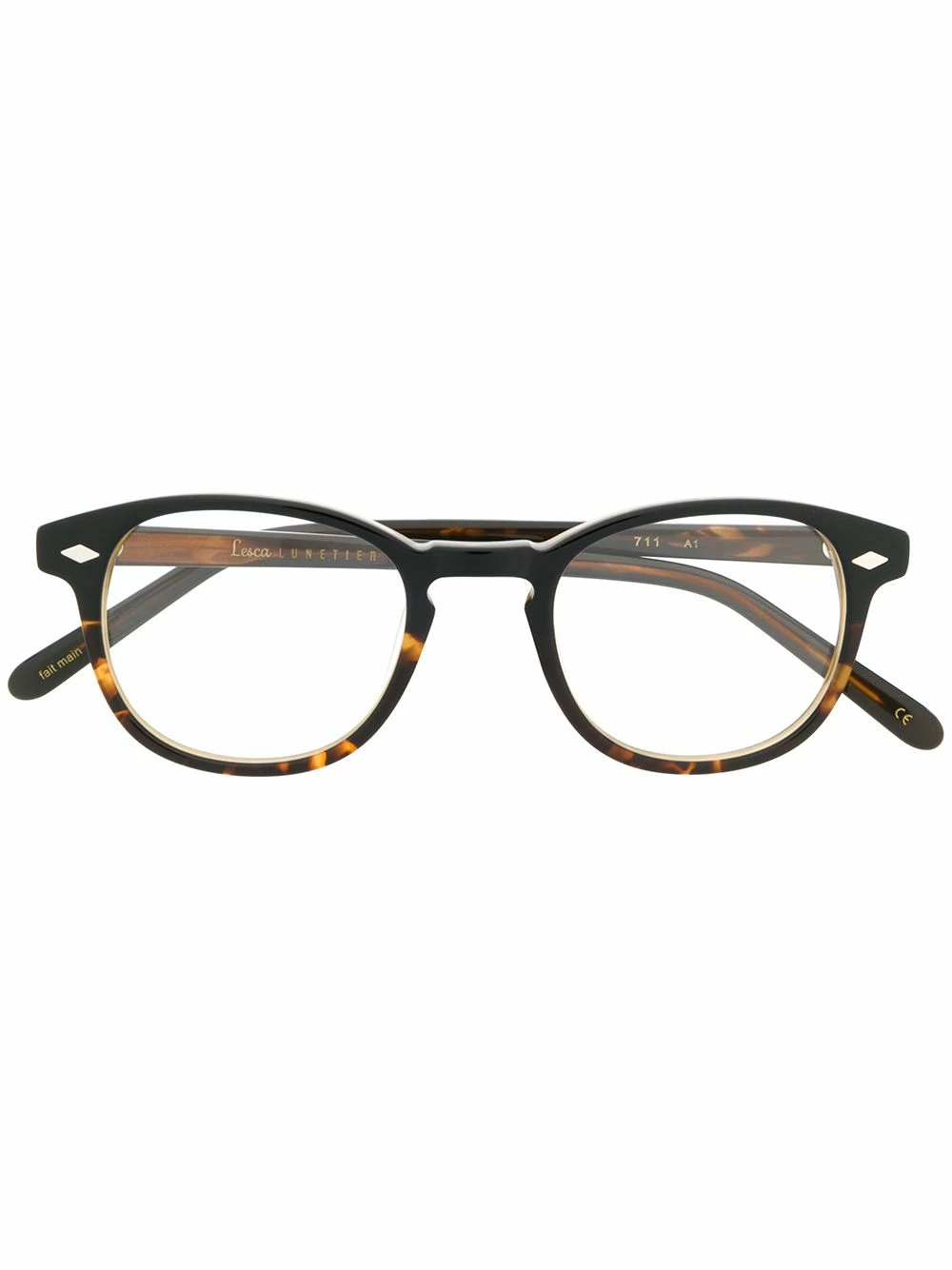 Lunettes de vue 711 à monture carrée Lesca avec monture carrée, branches droites à extrémités angulaires et détails façon écailles de tortue. Cet article est unisexe. Ce produit est vendu dans une boîte de protection.