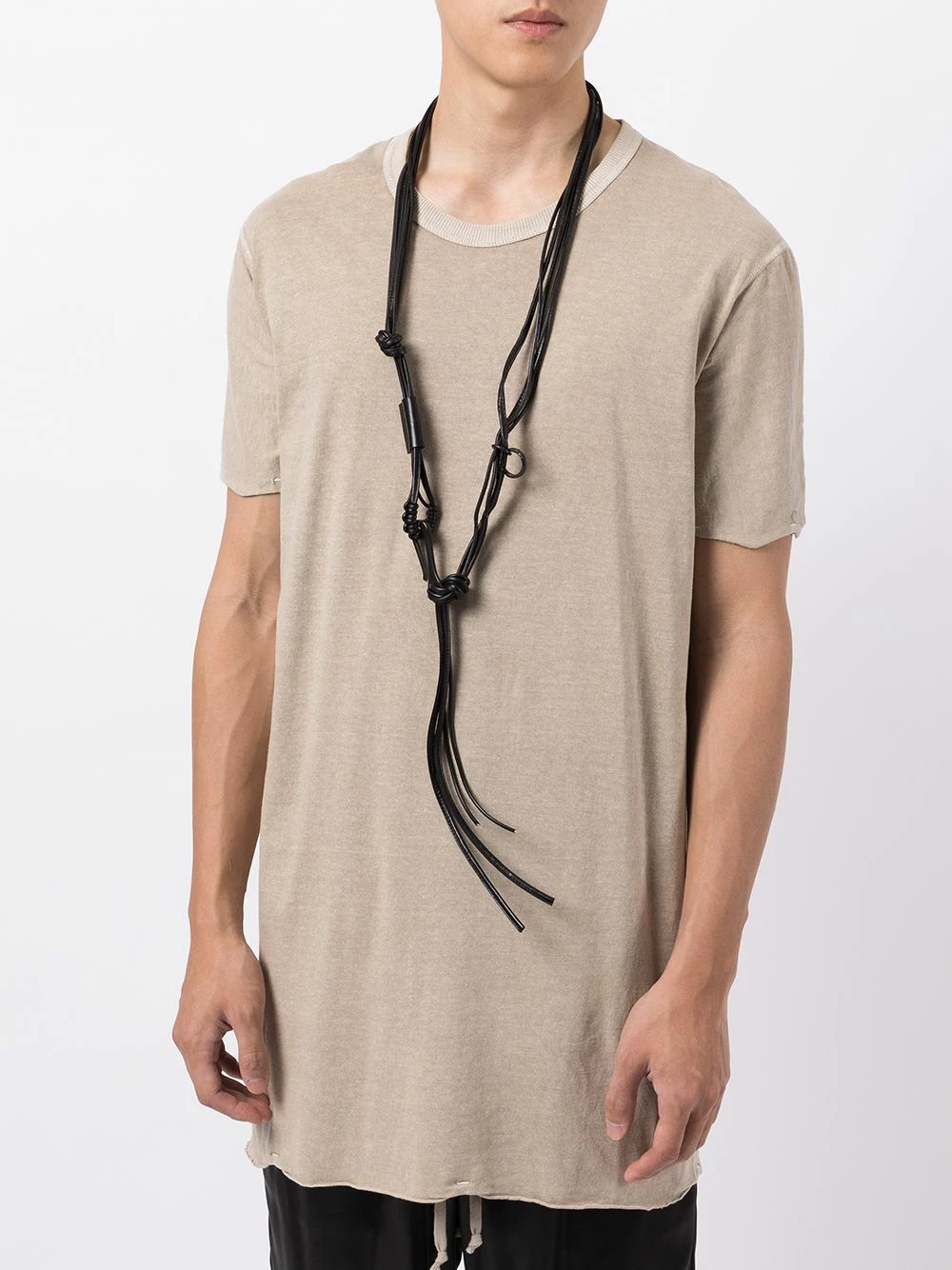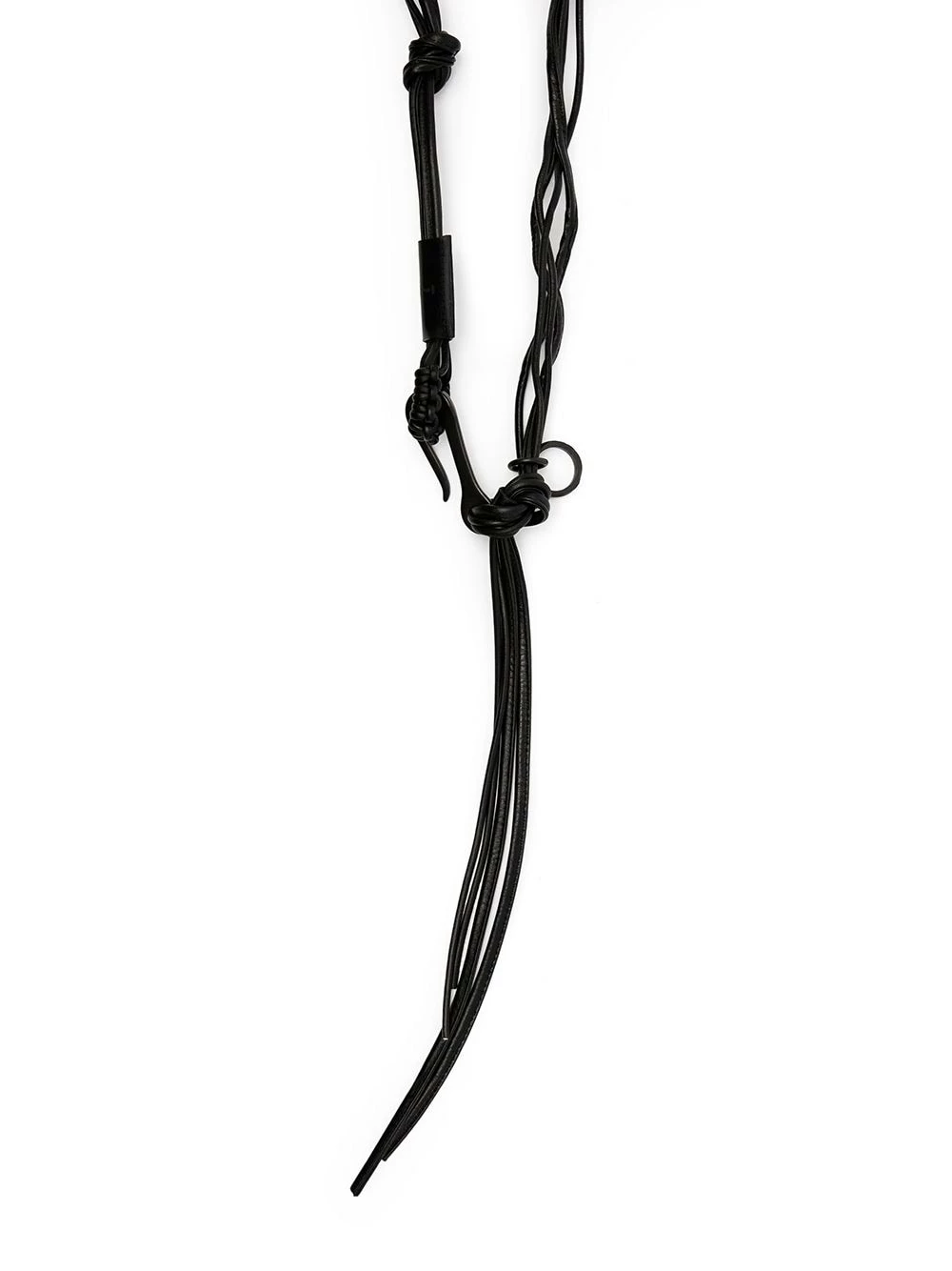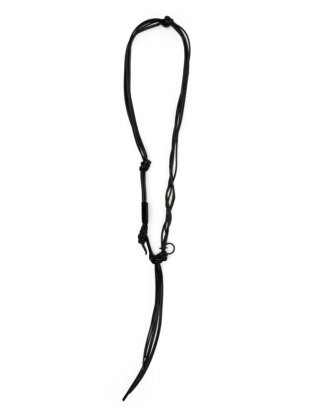 Fini mat, détail de nœud. Couleur : noir. Matière : cuir.