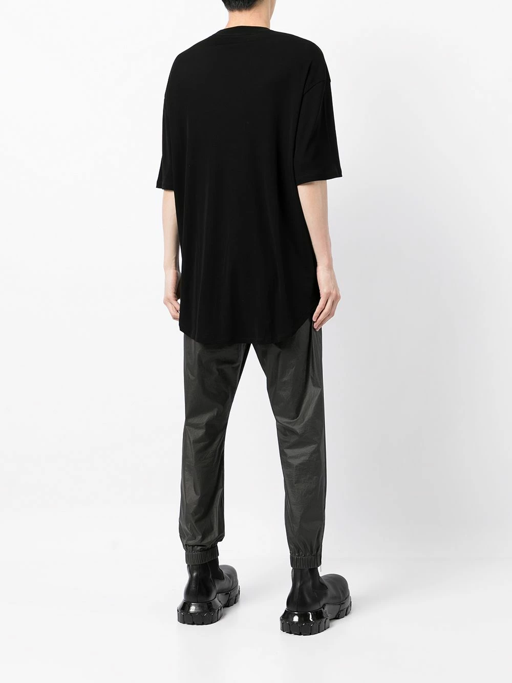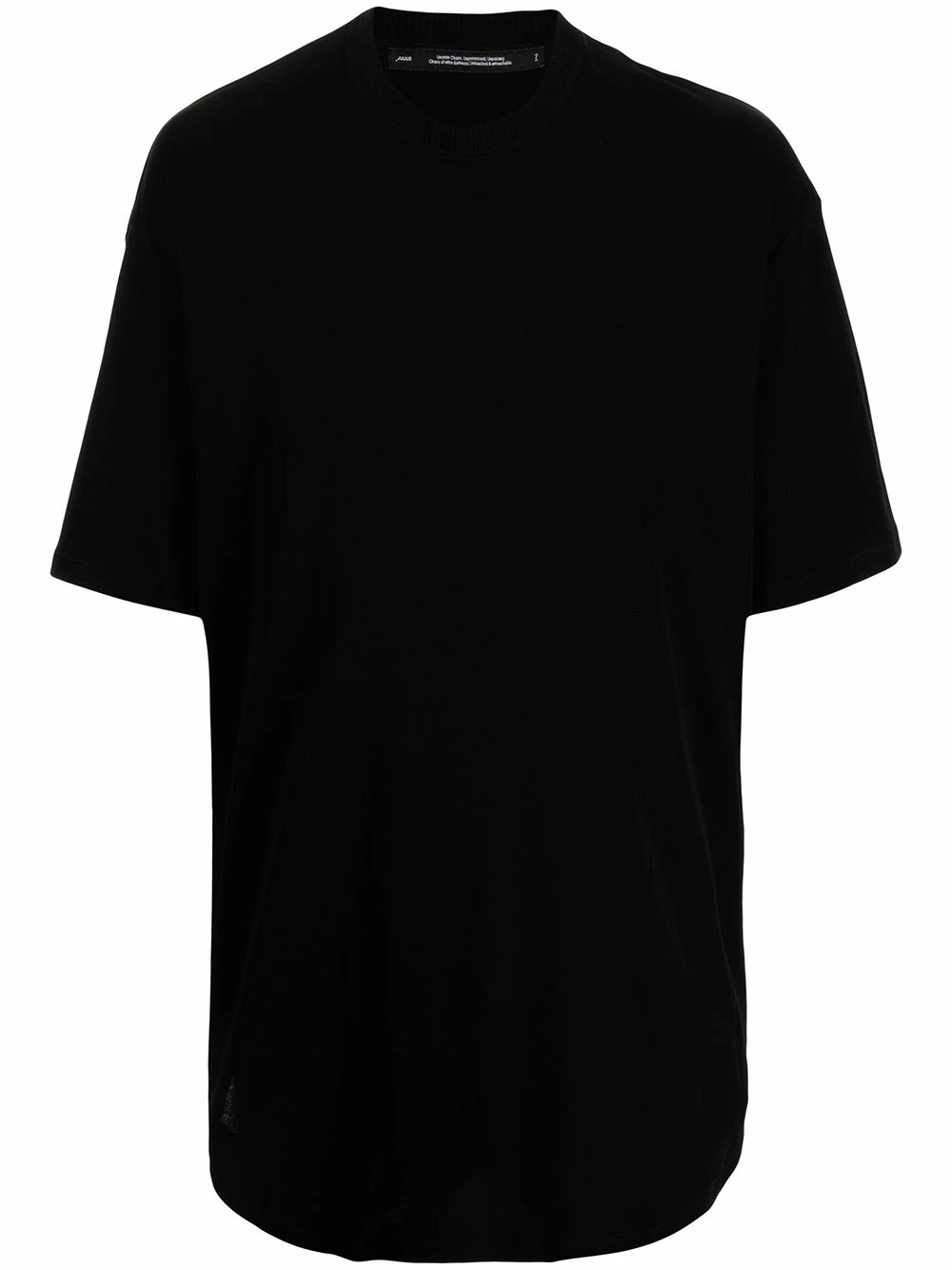 Design ton sur ton, encolure ronde, manches courtes, ourlet droit. Couleur : noir. Matière : coton.