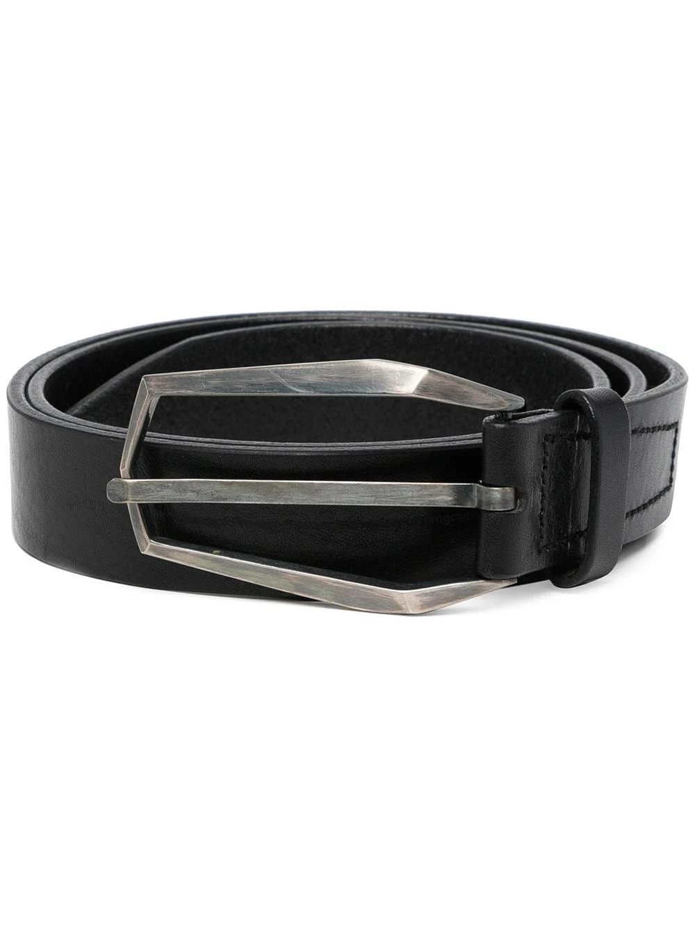 Fermeture à boucle argentée, trous percés, taille ajustable. Couleur : noir. MatiÚre : cuir.