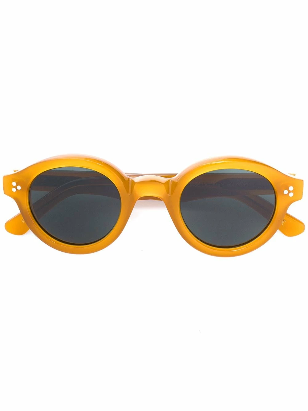 Orange round frame sunglasses from Lesca. This item is unisex. This item comes with a protective case.