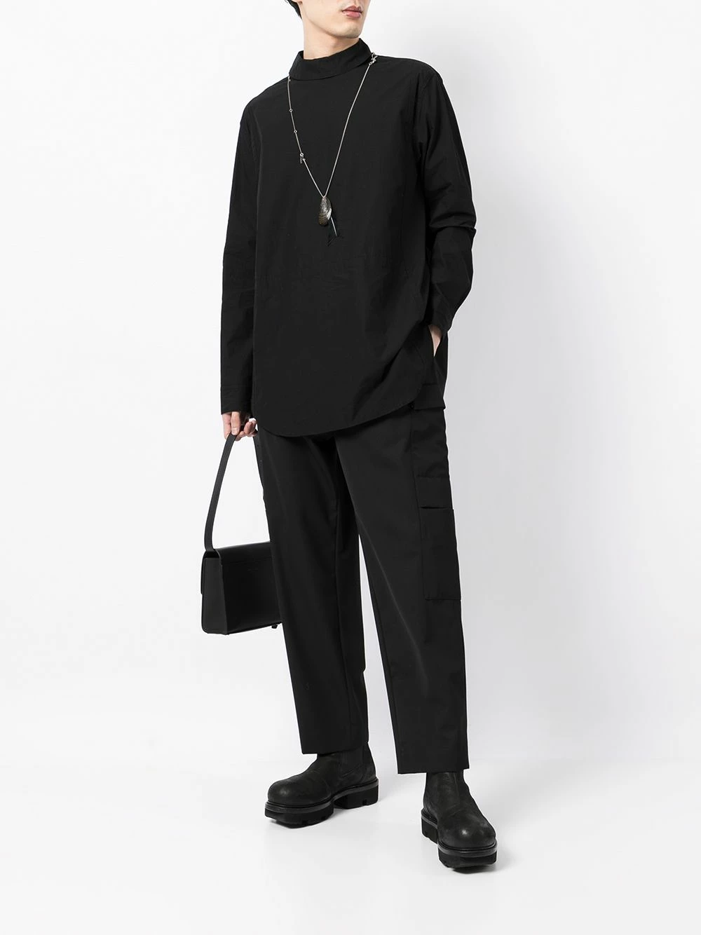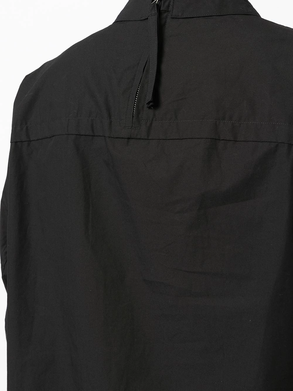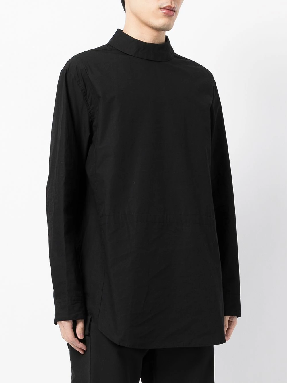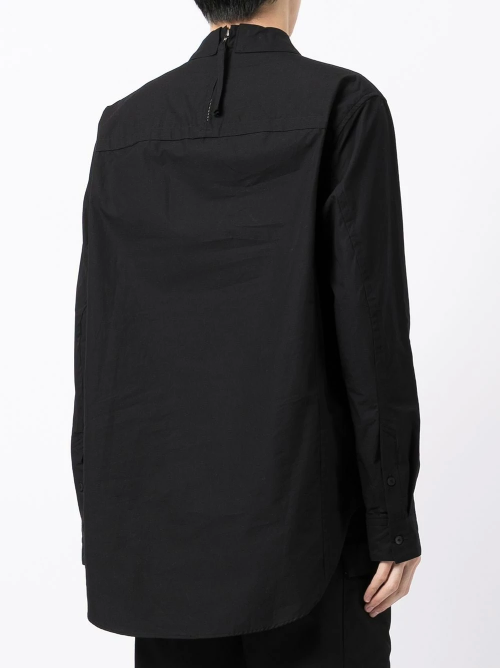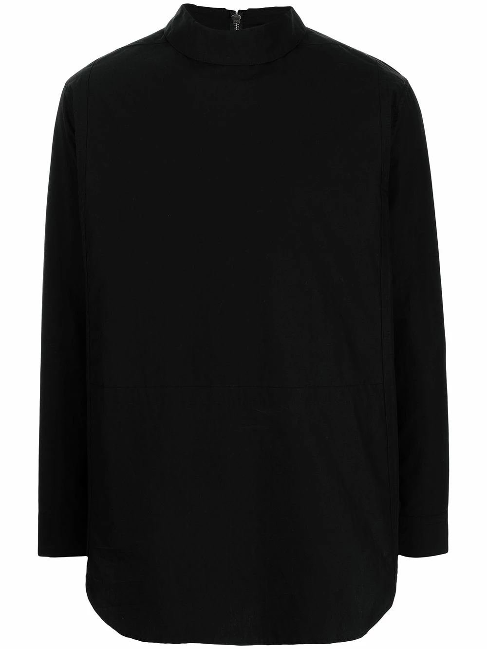 Fermeture zippée à l’arrière, col montant, manches longues, ourlet incurvé. Couleur : noir. Matière : coton.