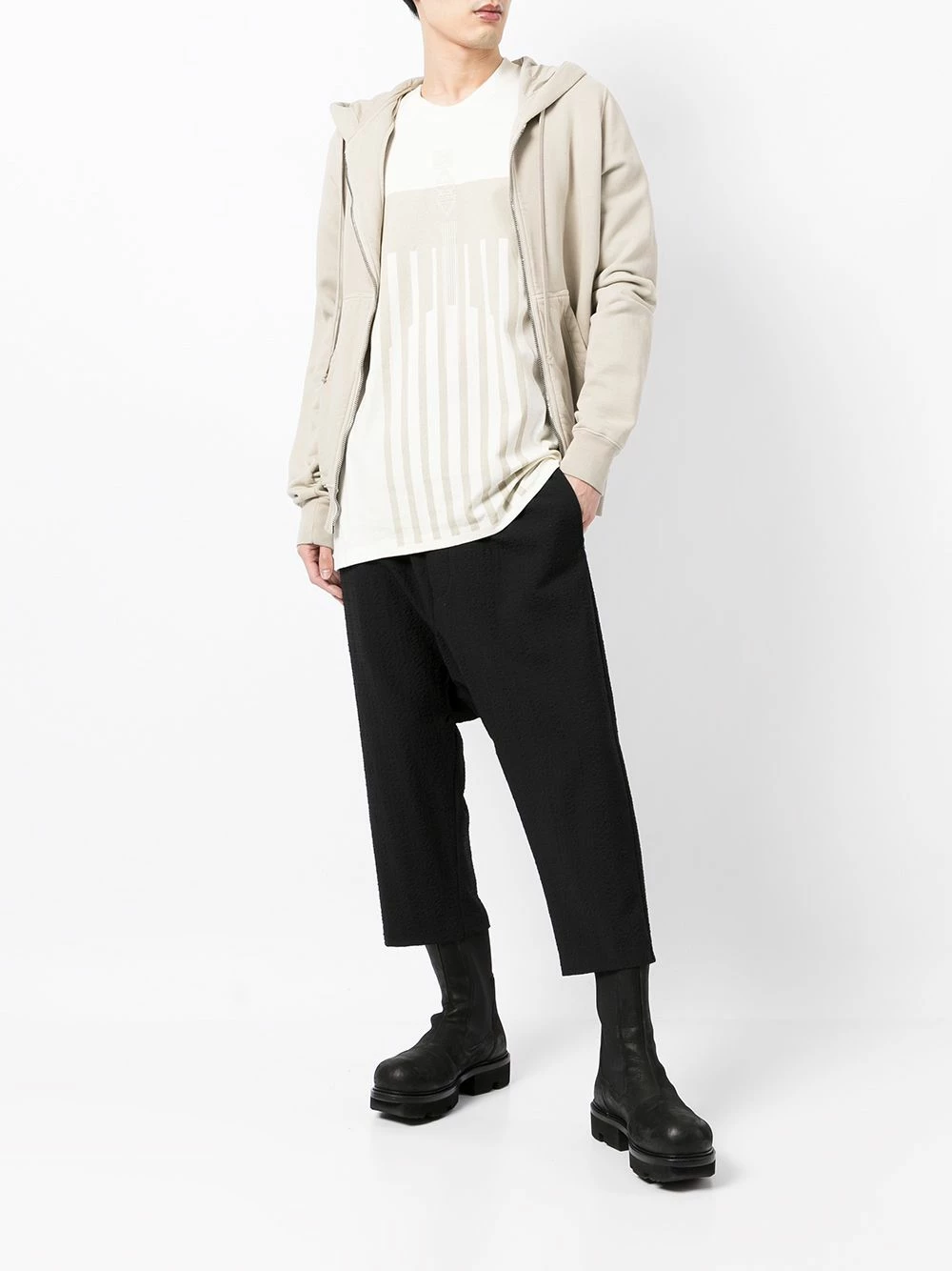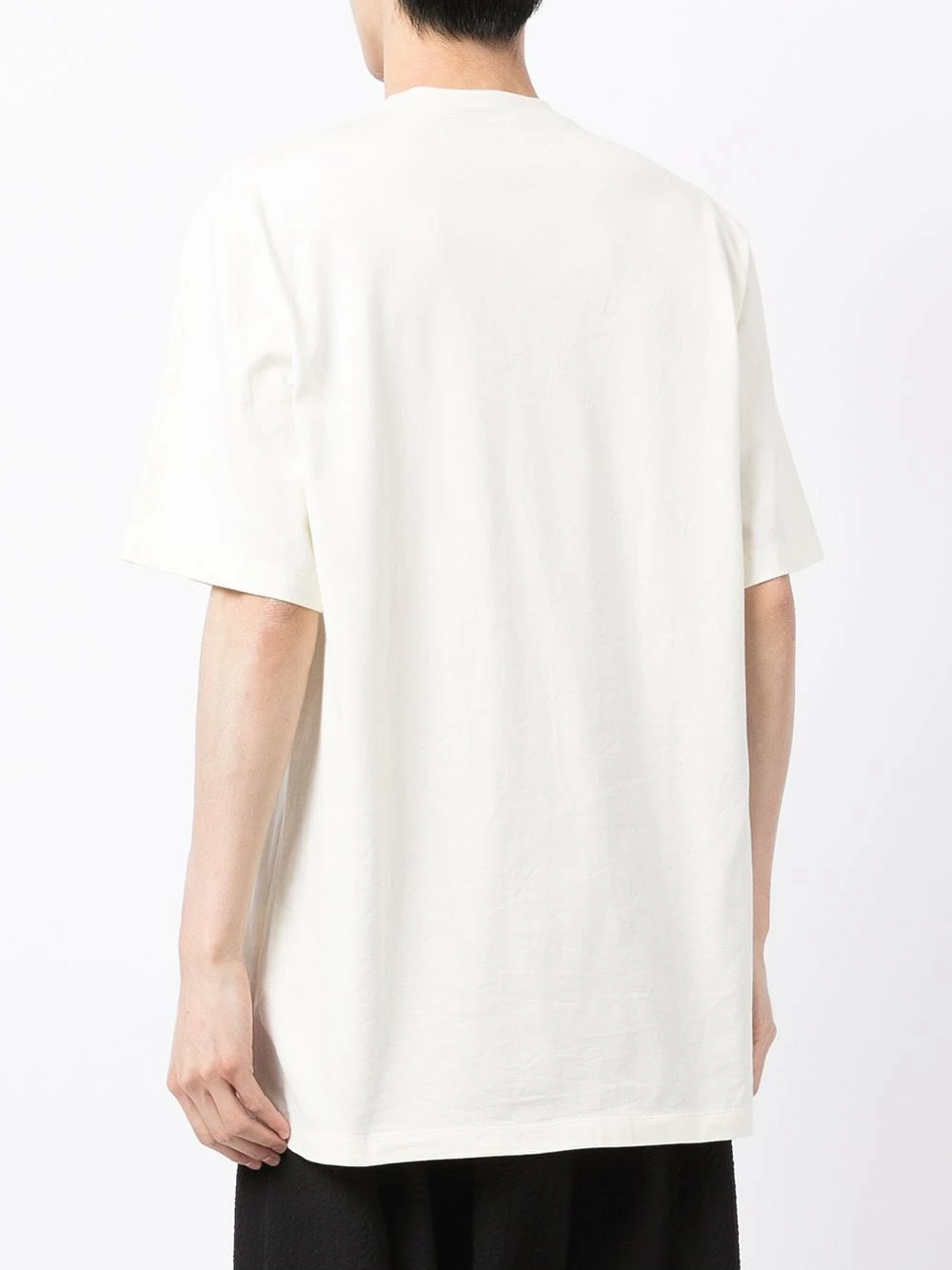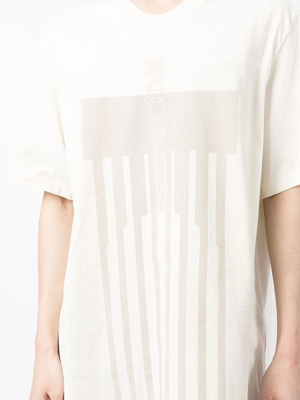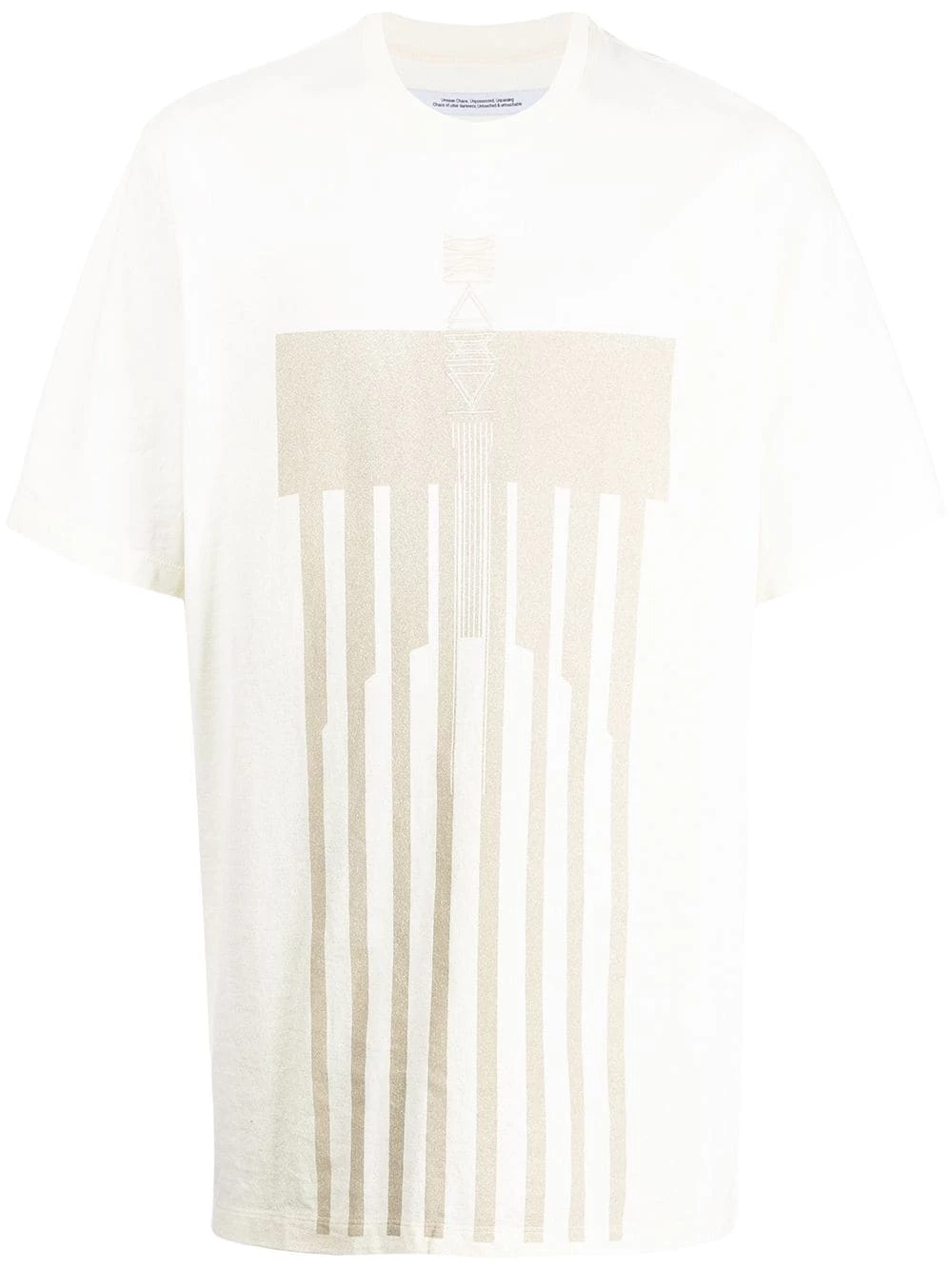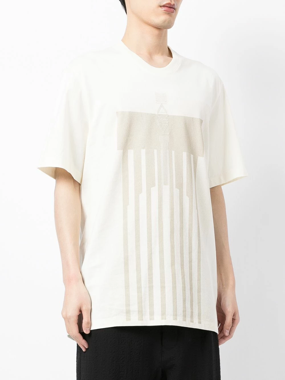 Imprimé graphique sur le devant, encolure ronde, manches courtes, ourlet droit. Matière : coton.